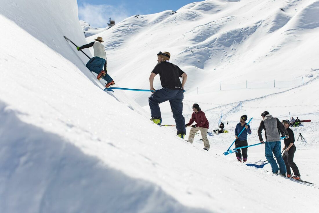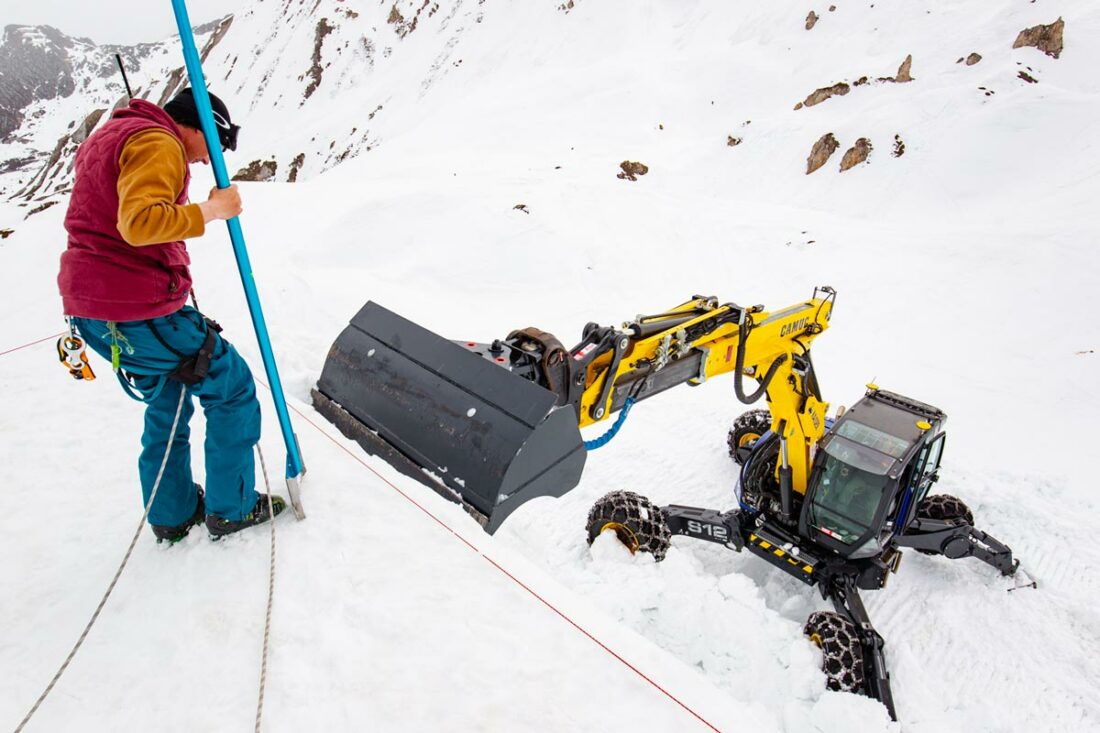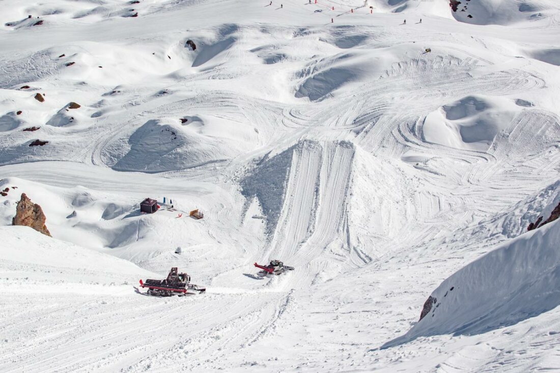 de préparation avec 3 dameuses, une pelle araignée et 10 shapers