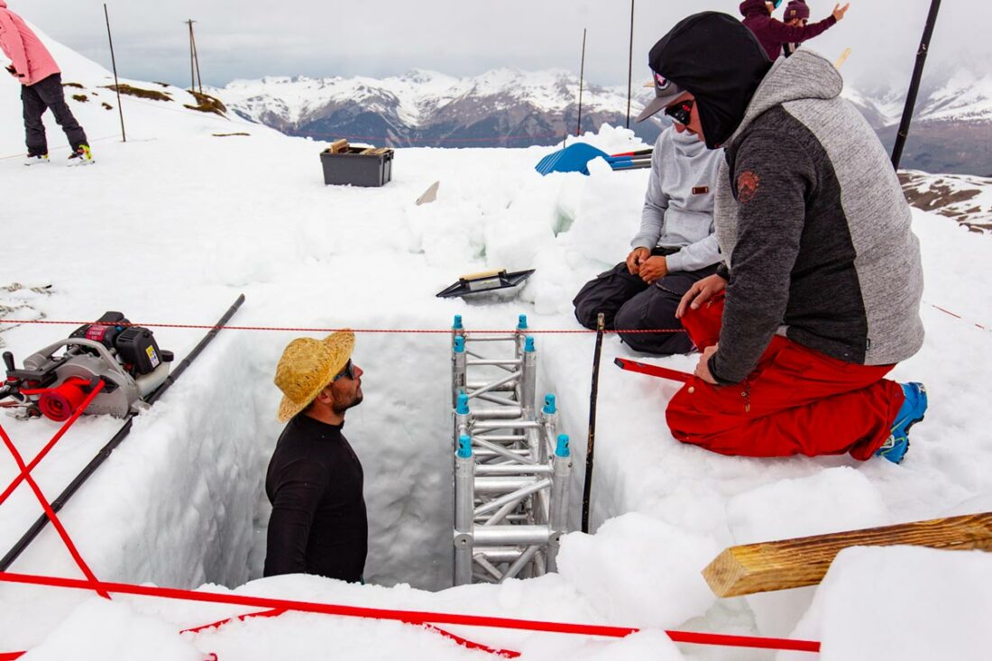 Production opérationnelle de la tentative de record du monde de saut en hauteur en quarter-pipe par Kevin Rolland